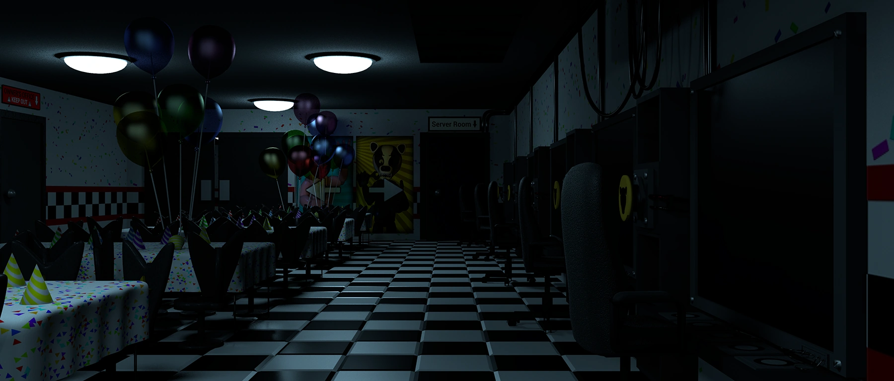 - Despite there being a staff lounge and an office for Fritz, the Diner doesn't have a security office or central location where the player is situated, with the player being put in the middle of a room instead.